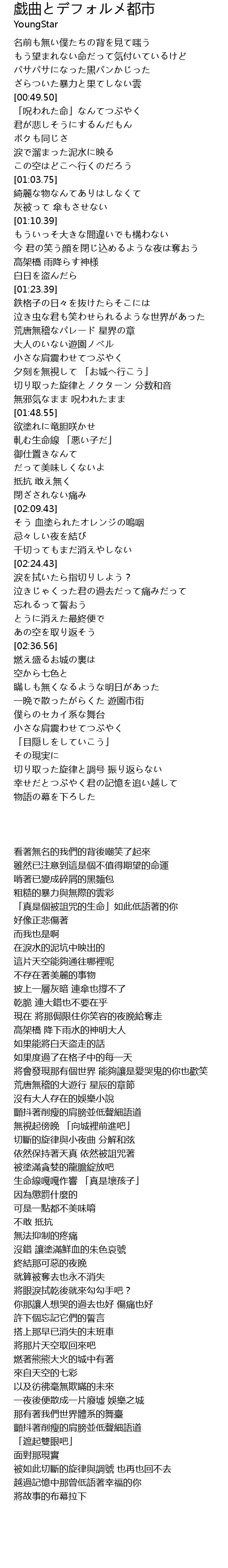 | [02:43.14] | 一晩で散ったがらくた 遊園市街 |