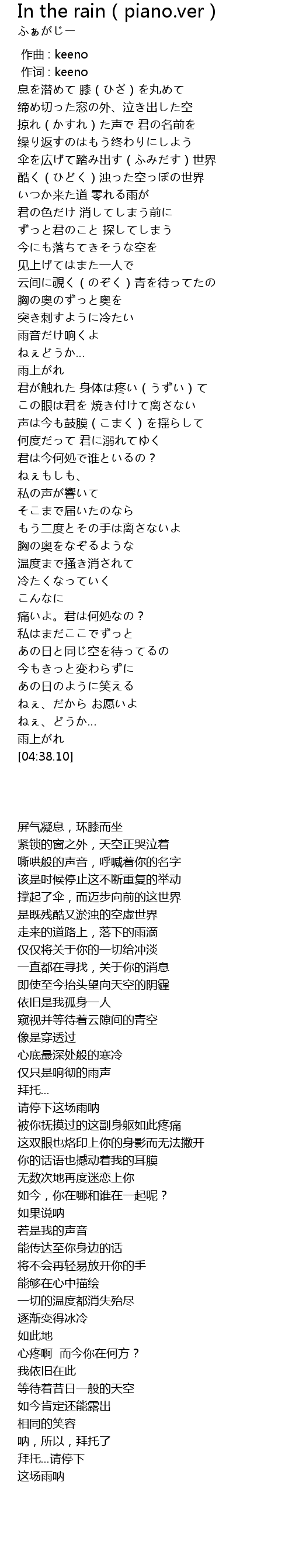 | [01:44.34] | 云间に覗く(のぞく)青を待ってたの |