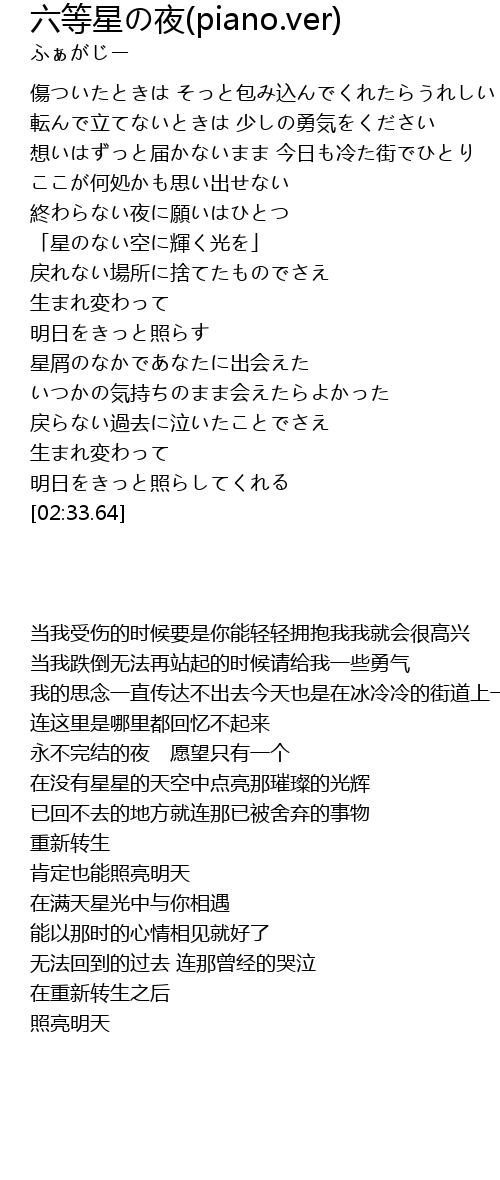 | [01:39.05] | 「星のない空に輝く光を」 |