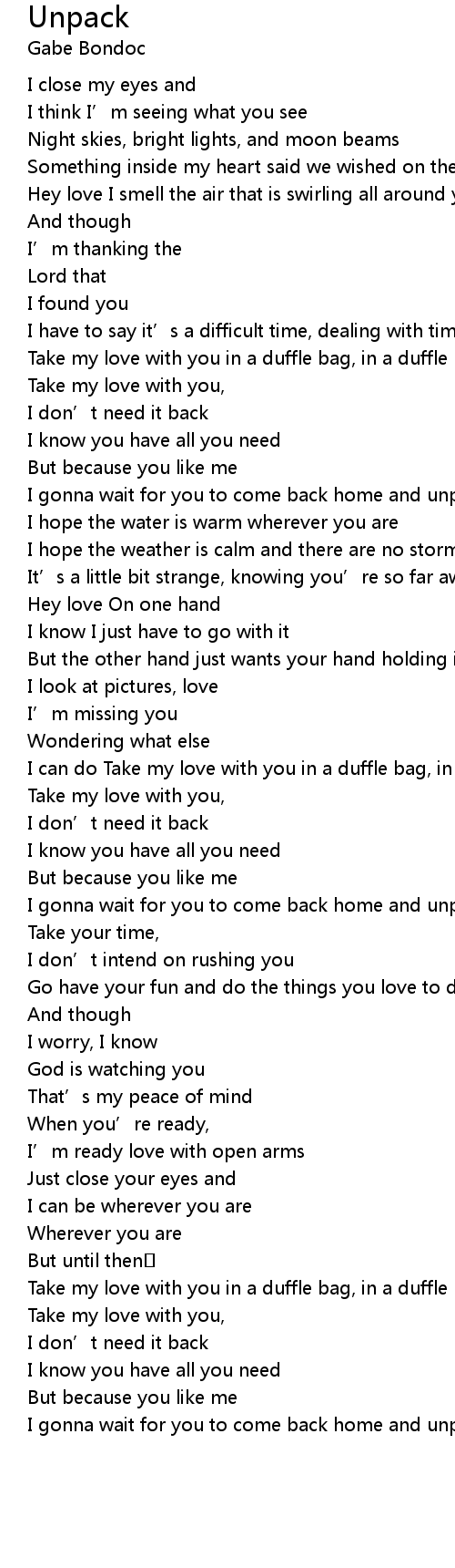 | I gonna wait for you to come back home and unpack |