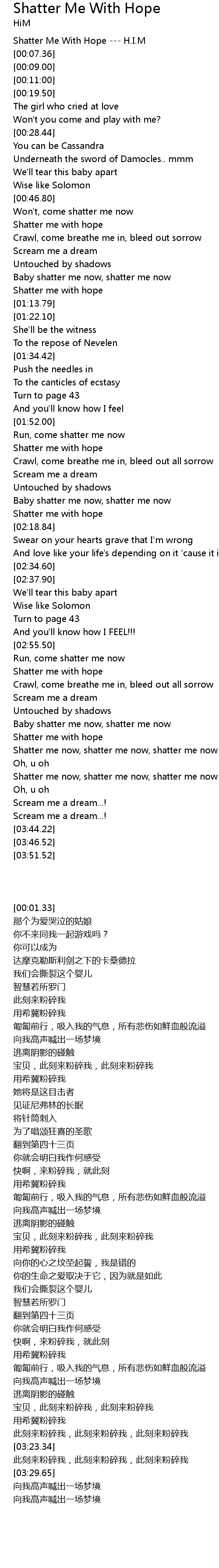 [00:01.33] Shatter Me With Hope --- H.I.M