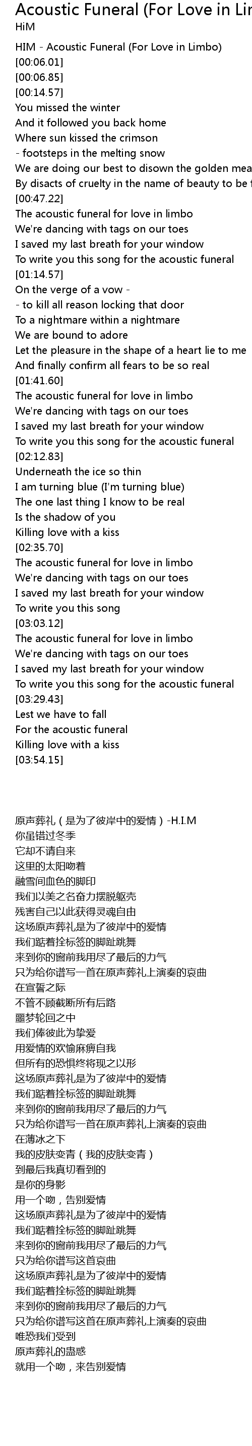 [00:01.24] HIM - Acoustic Funeral (For Love in Limbo)