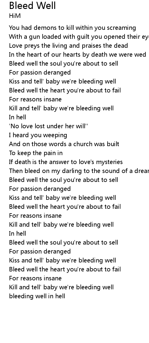 Kill and tell' baby we're bleeding well |