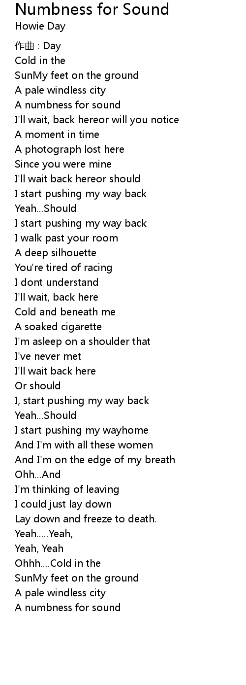 | Song | Numbness for Sound |