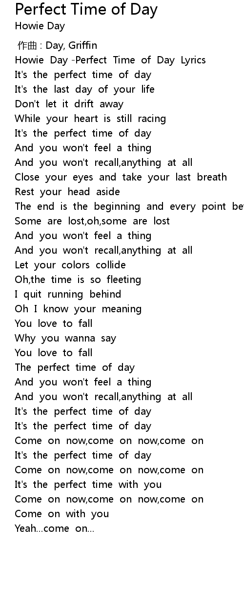 | [00:02.89] | Howie Day -Perfect Time of Day Lyrics |