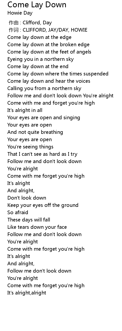| [02:01.73] | Follow me and don' t look down You' re alright |