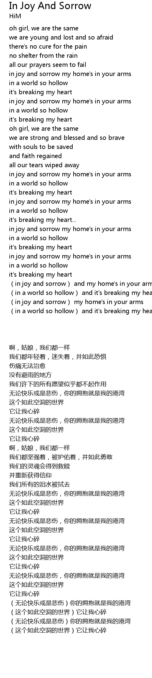 | [03:22.67] | (in joy and sorrow) and my home's in your arms |
