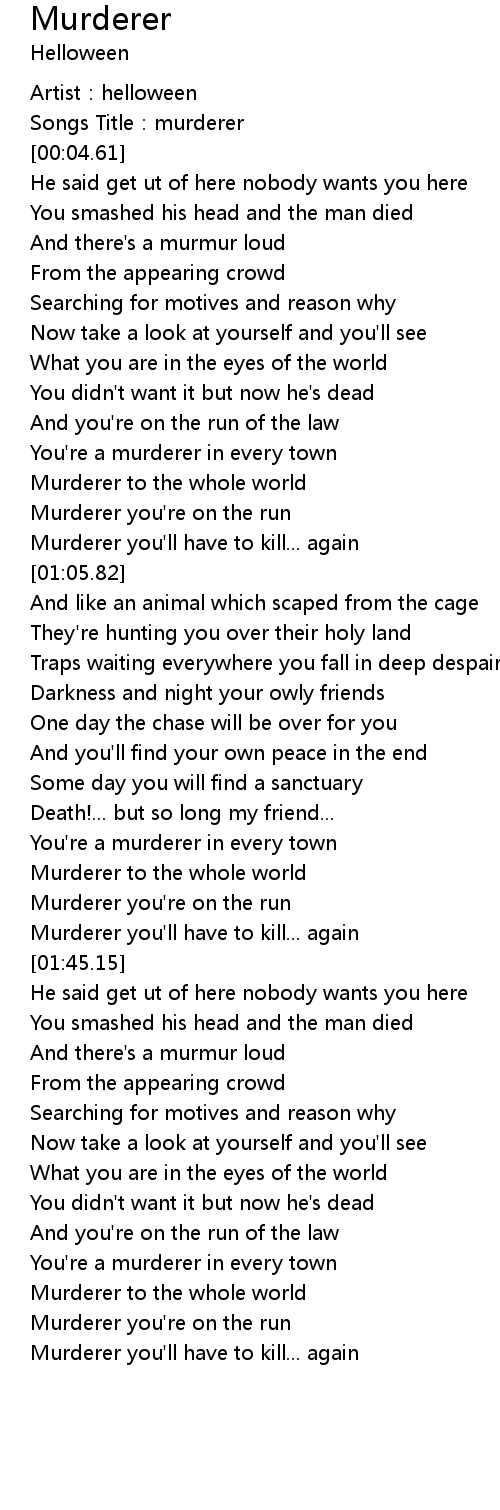| [00:58.95] | Murderer you' ll have to kill... again |