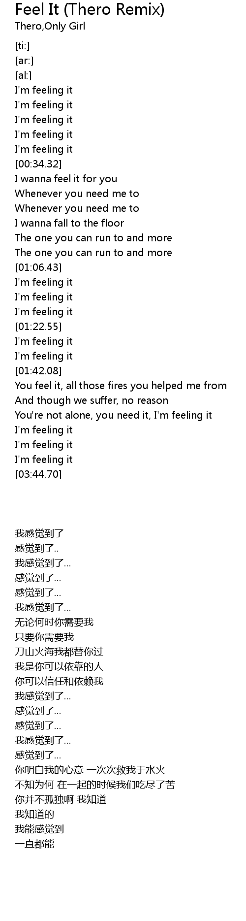 | [02:47.89] | You're not alone, you need it, I'm feeling it |