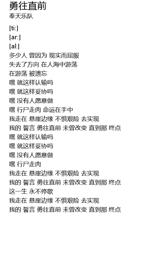 | [03:53.53] | 我走在 悬崖边缘 不惧艰险 去实现 |