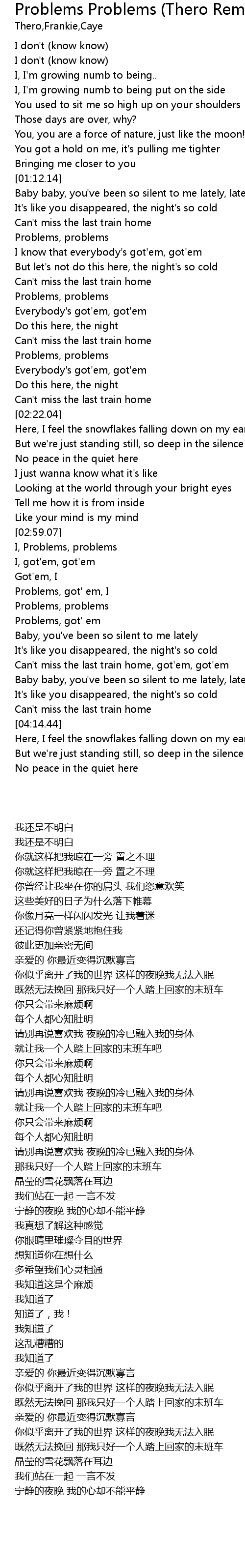 | [01:31.45] | Problems, problems |