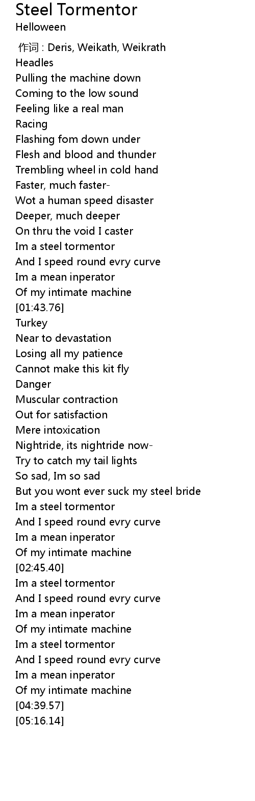 | [04:03.63] | Im a steel tormentor |