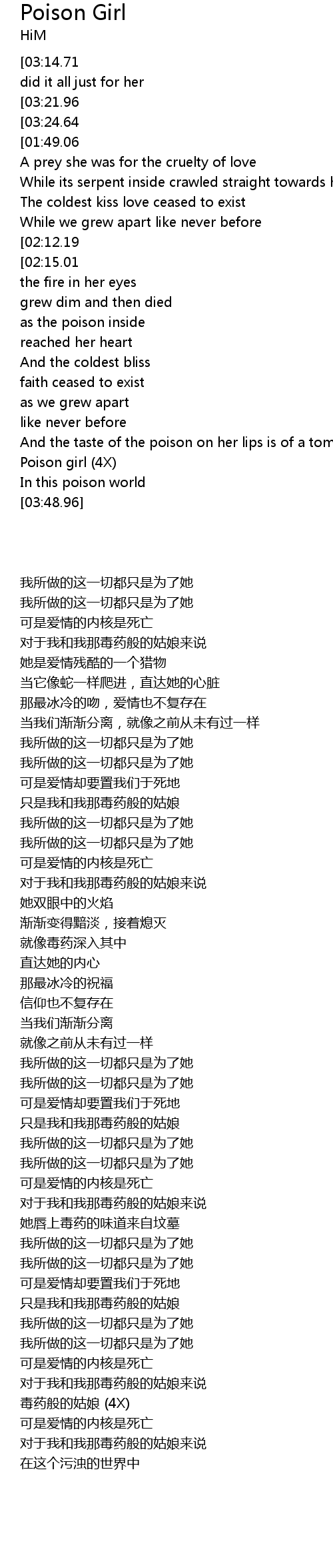 [03:40.18][03:24.64][02:30.38][01:28.40][00:10.85] For me and my poison girl