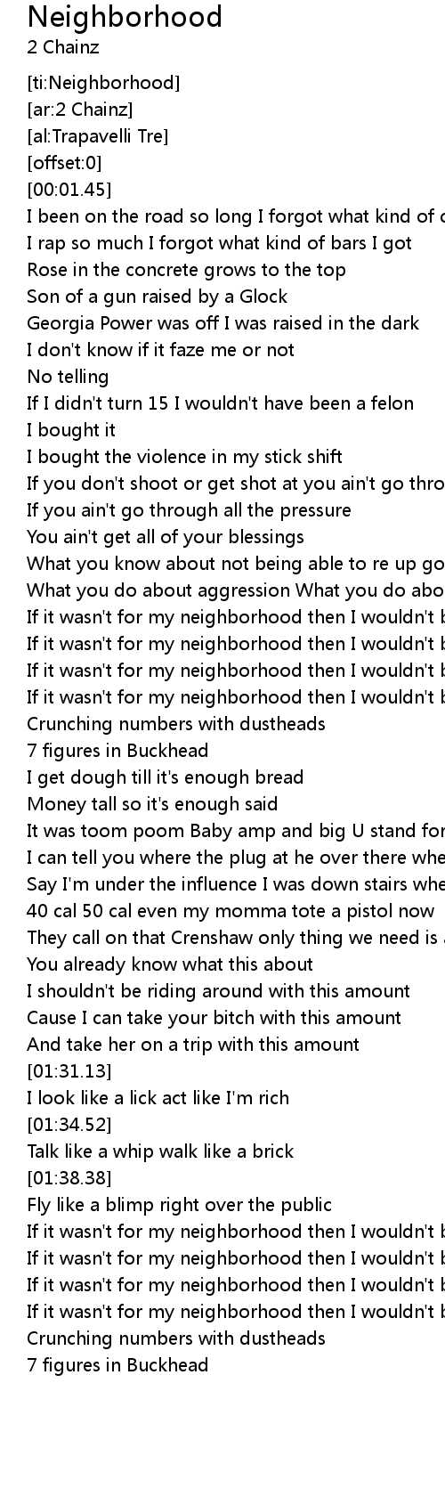 If it wasn't for my neighborhood then I wouldn't be nothing |