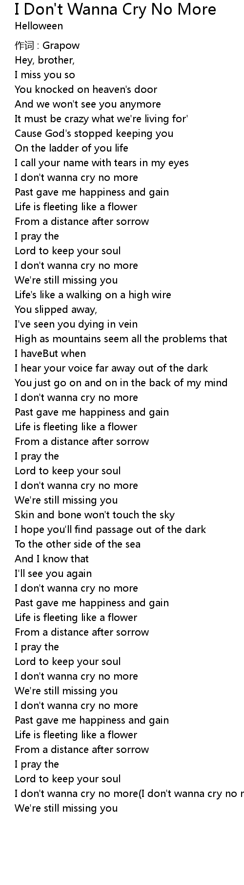 | I don' t wanna cry no more I don' t wanna cry no more | |