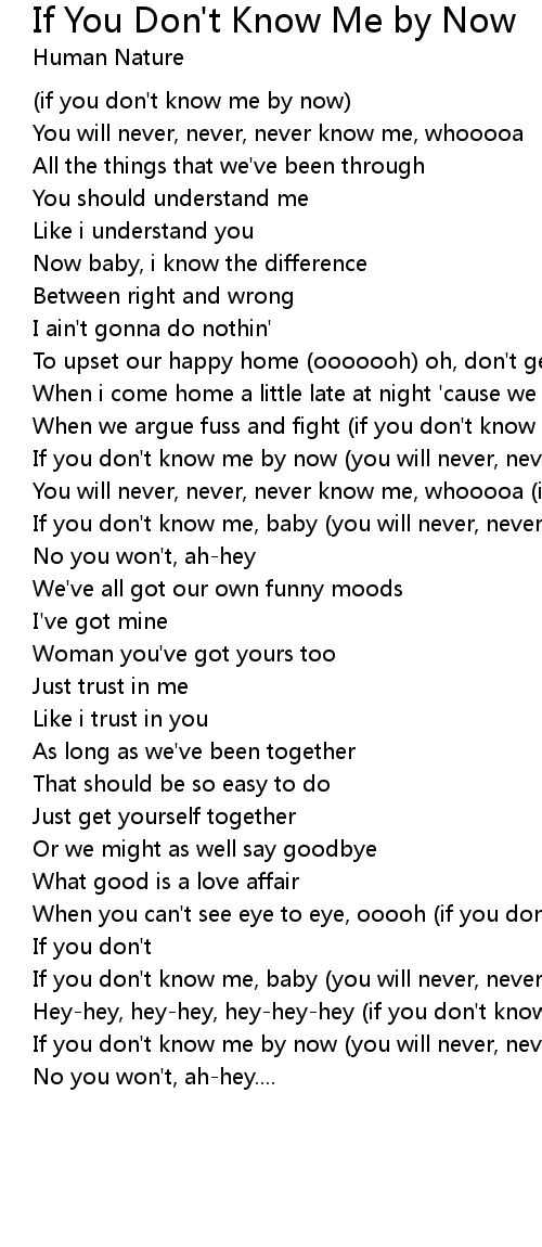 If you don't know me by now (you will never, never, never know me) |