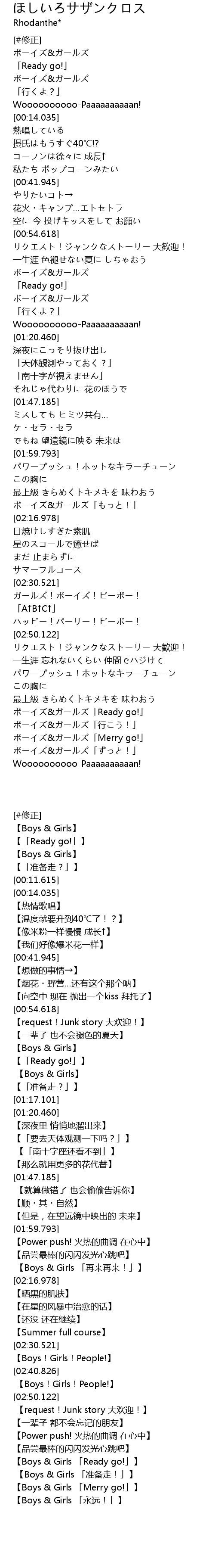 | [02:11.646] | ボーイズ&ガールズ「もっと!」 |