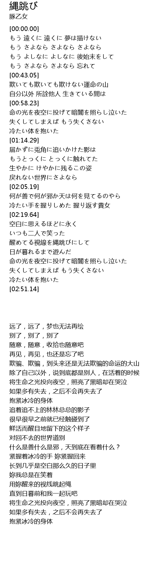 | [02:28.69] | 醒めてる視線を縄跳びにして |