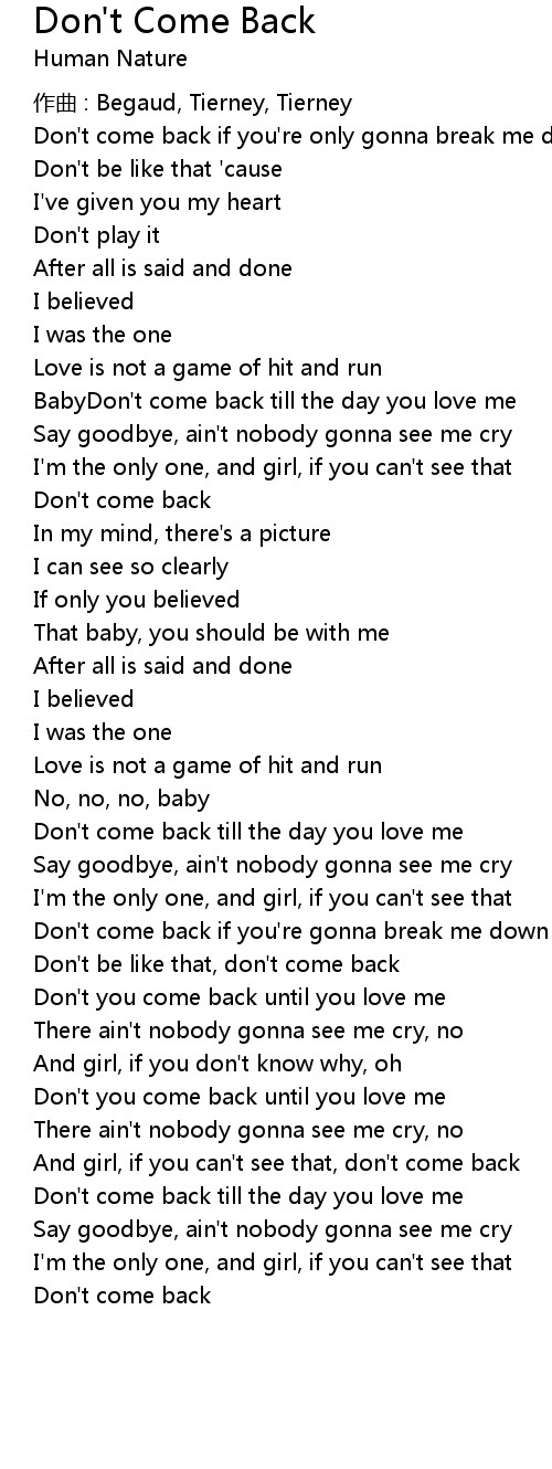 | Don' t come back | |