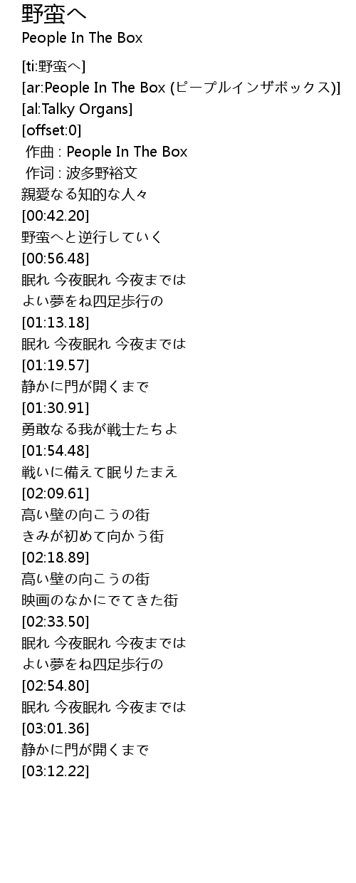 | [00:59.43] | 眠れ 今夜眠れ 今夜までは |