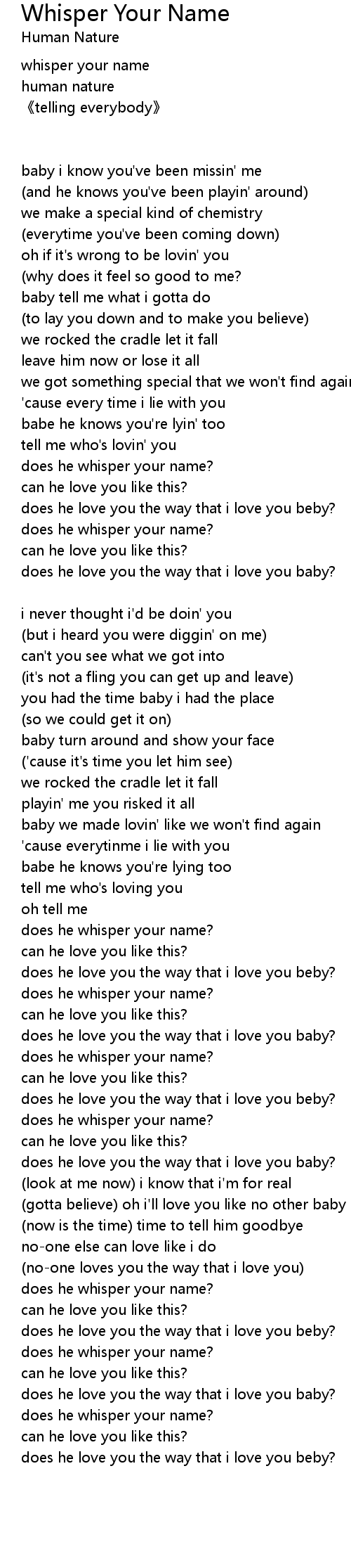 | does he whisper your name? | |