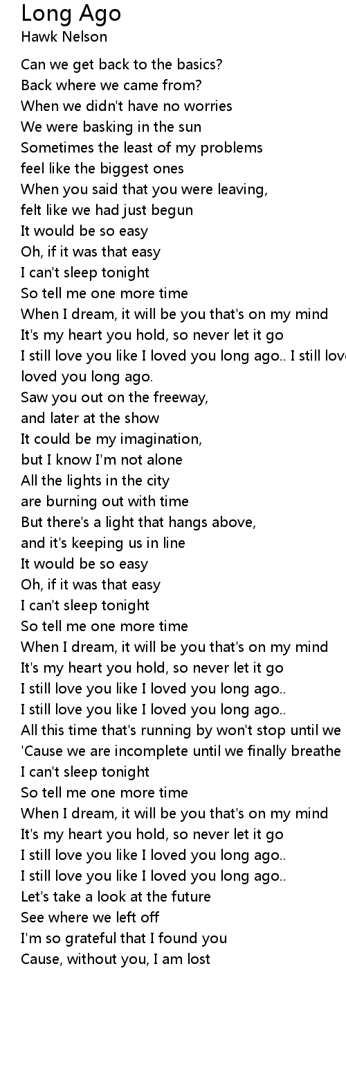 I still love you like I loved you long ago.. I still love you like I loved you long ago. |