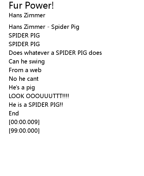 | [00:12.82] | Does whatever a SPIDER PIG does |