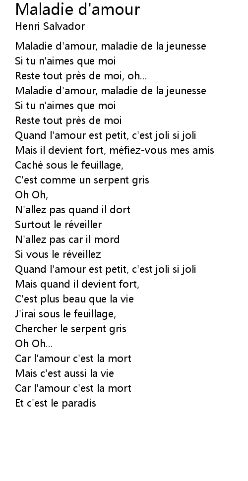 | Song | Maladie d'amour |