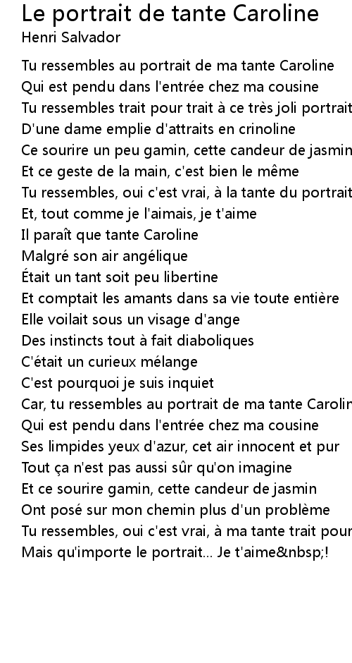 | Car, tu ressembles au portrait de ma tante Caroline | |