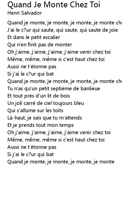 | [00:08.51] | Quand je monte, je monte, je monte, je monte chez toi |