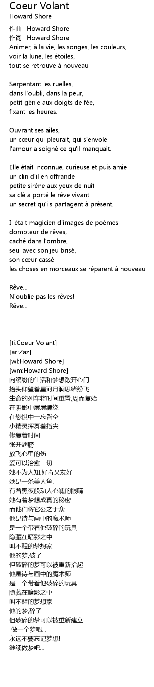| Song | Coeur Volant |