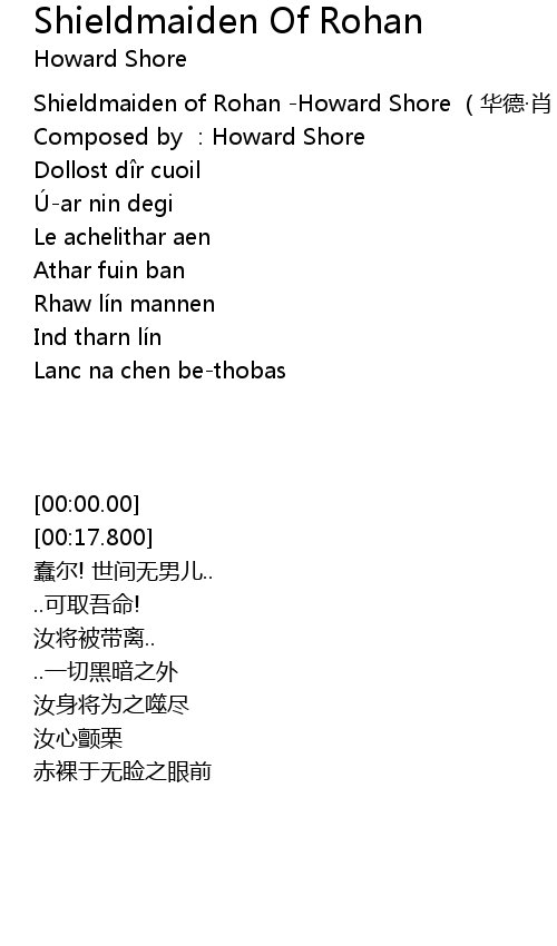 | [00:00.00] | Shieldmaiden of Rohan Howard Shore hua de xiao |