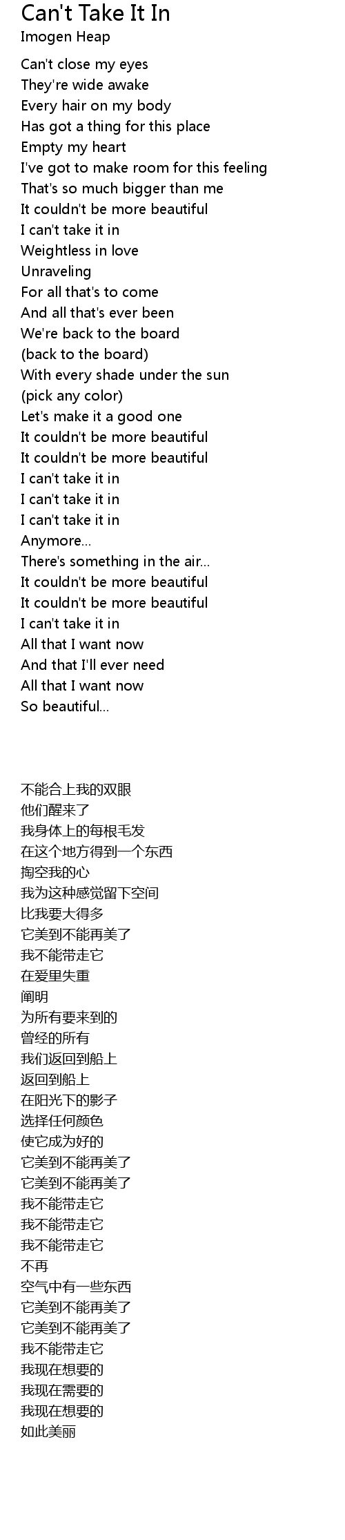 Can't Take It In Lyrics