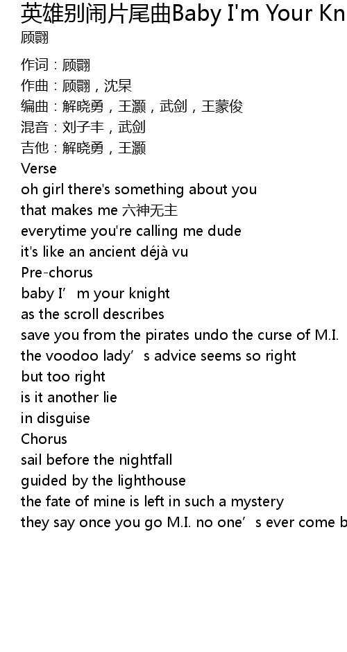 | Song | 英雄别闹片尾曲Baby I'm Your Knight(伴奏) |