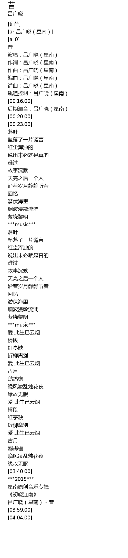 | [03:53.00] | 吕广晓(星南) - 昔 |