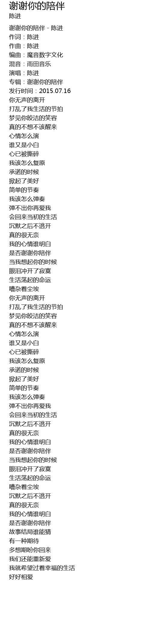 | [00:02.282] | 谢谢你的陪伴-陈进 |