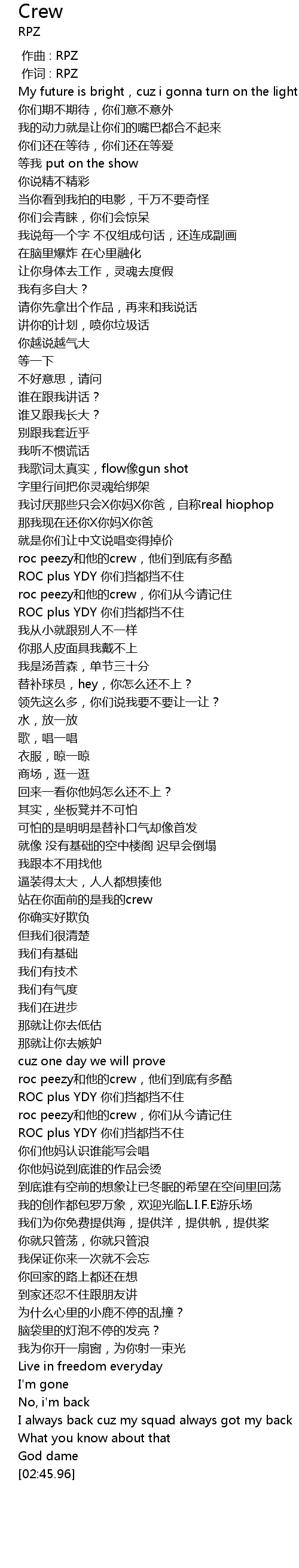 | [02:00.09] | roc peezy和他的crew,你们从今请记住 |