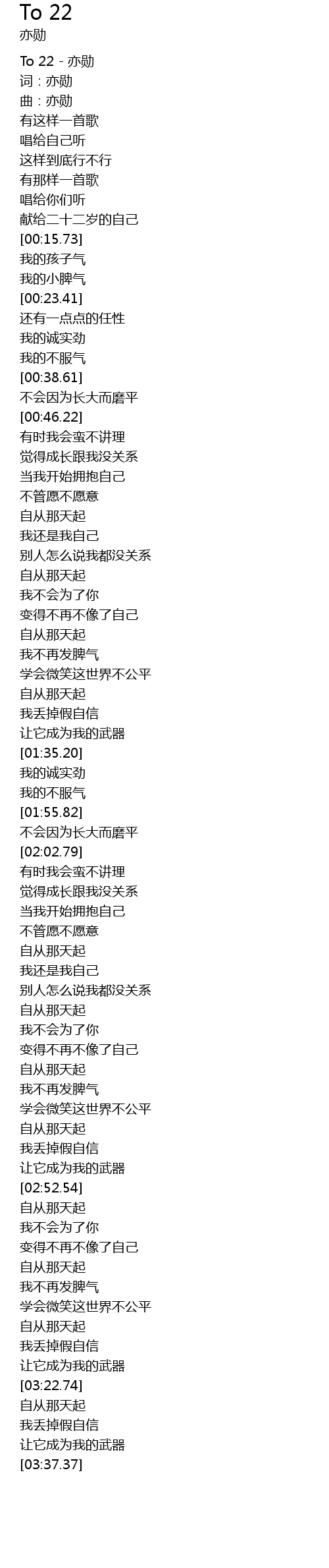 | [00:00.65] | To 22 - 亦勋 |
