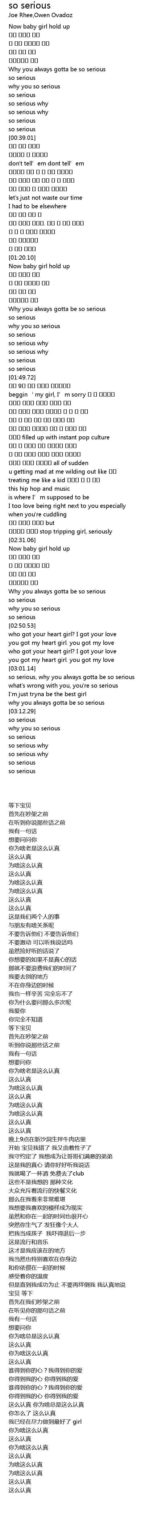 | [03:01.80] | so serious, why you always gotta be so serious |