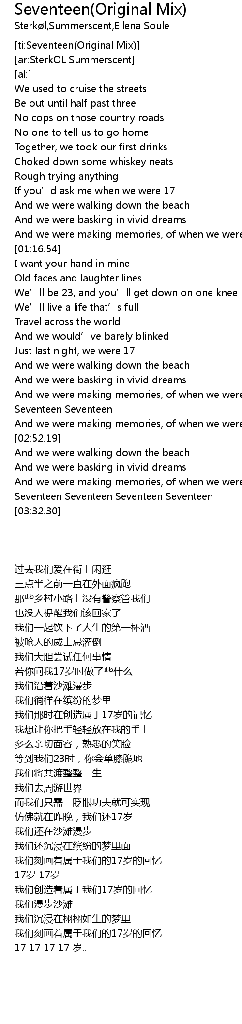 | [03:15.42] | And we were making memories, of when we were 17 |