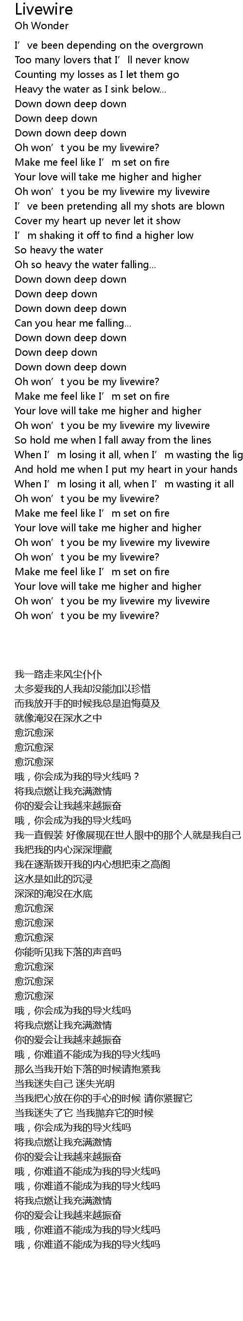 | [02:39.46] | Oh won’t you be my livewire my livewire |