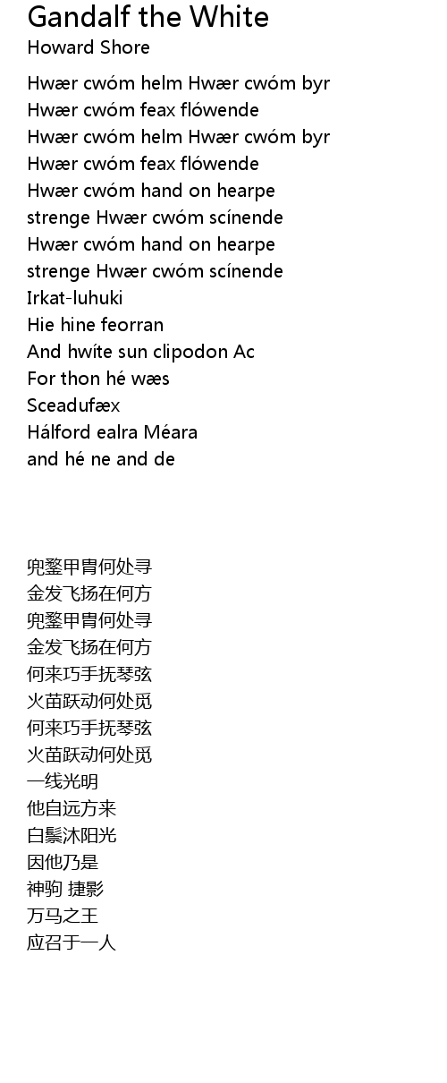 | Song | Gandalf the White |