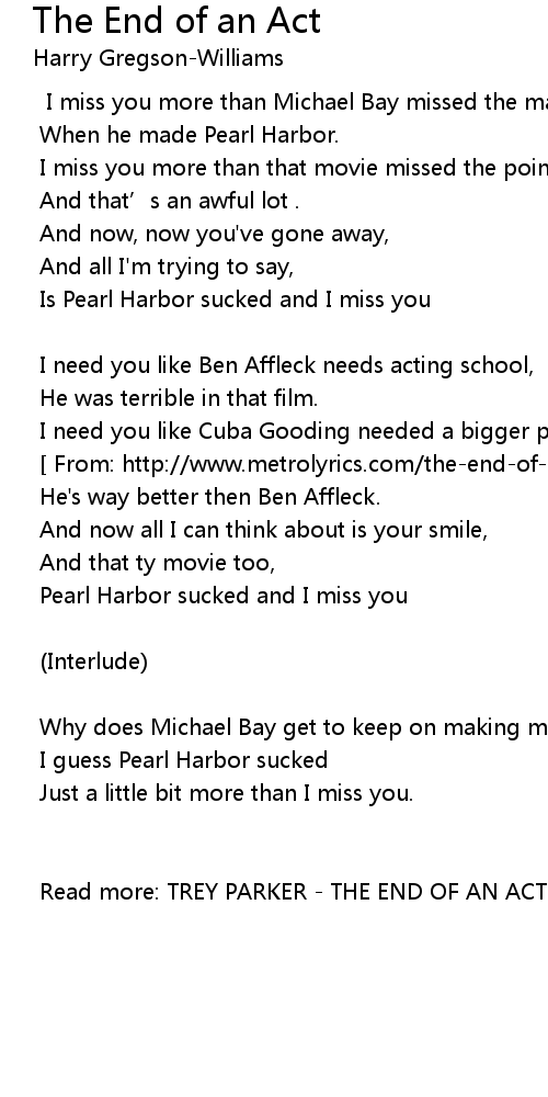 | Read more: TREY PARKER THE END OF AN ACT LYRICS |