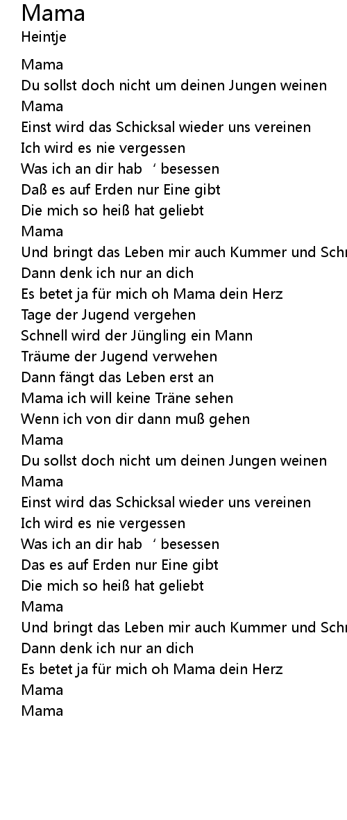 | Es betet ja für mich oh Mama dein Herz | |