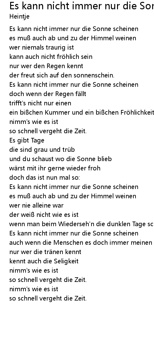 | Song | Es kann nicht immer nur die Sonne scheinen |
