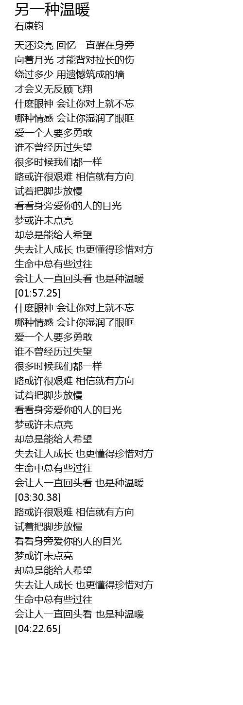 | [03:22.36] | 会让人一直回头看 也是种温暖 |