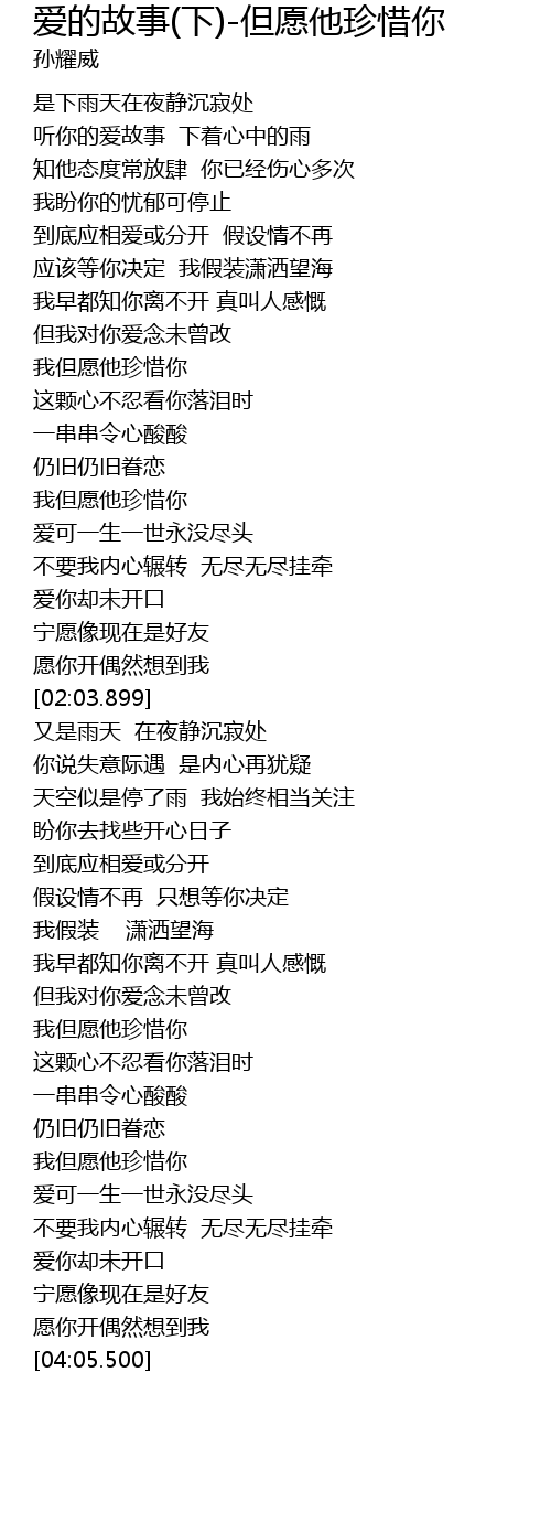 | Song | 爱的故事(下)-但愿他珍惜你 |