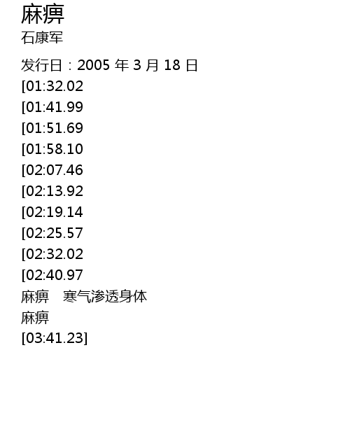 | [02:56.22] | 麻痹 寒气渗透身体 |