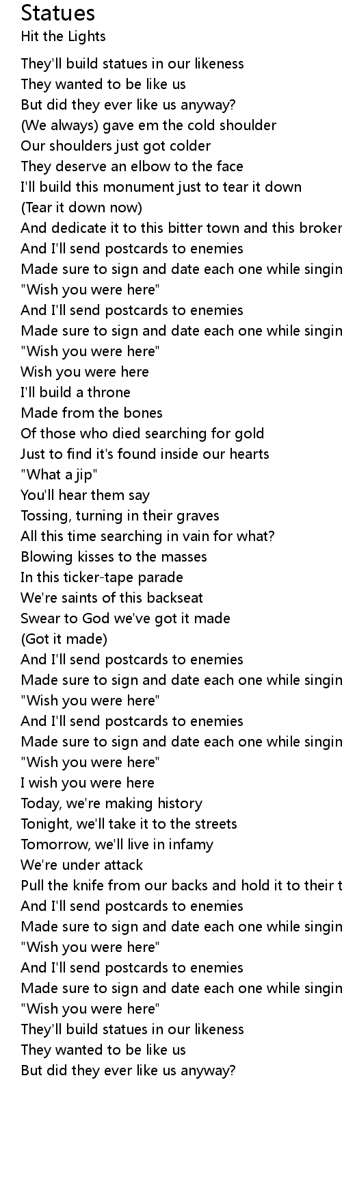 And I'll send postcards to enemies |