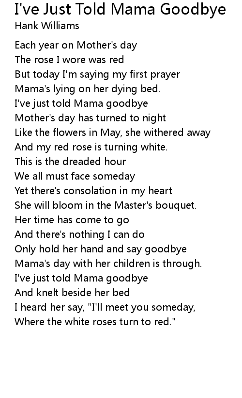 Song I've Just Told Mama Goodbye